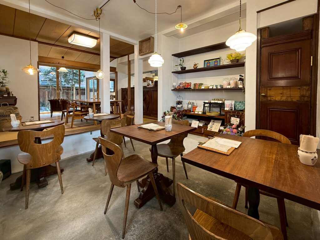 築60年以上の古民家を改装したどこか懐かしい空間。今回利用したソファ席は、春風に揺れる新緑が美しい中庭を堪能できる、まるで特等席のような居心地のよい席でした。ランチは11時~14時まで、喫茶は14時~18時までなので事前予約がオススメです。
