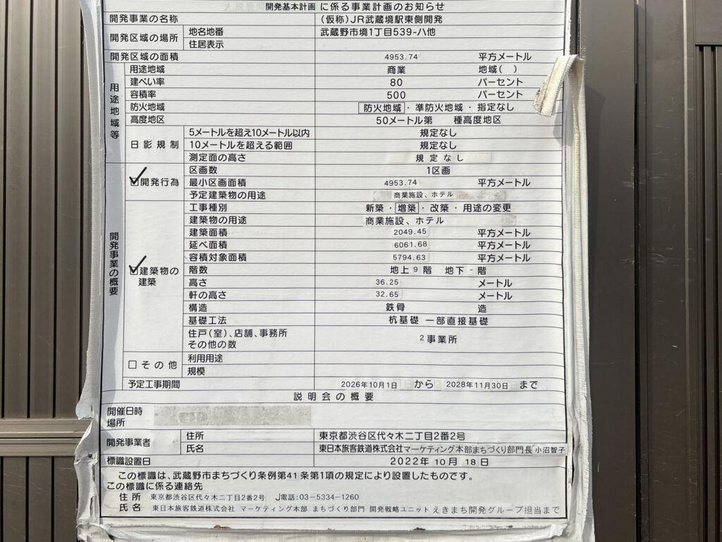 武蔵野市議会議川名ゆうじ氏のブログによれば、当初予定されていたスポーツクラブは断念され、延べ床面積も縮小、建物の高さも低くなったとのこと。また、nonowa武蔵境EASTについては、2026年3月末で営業終了予定。